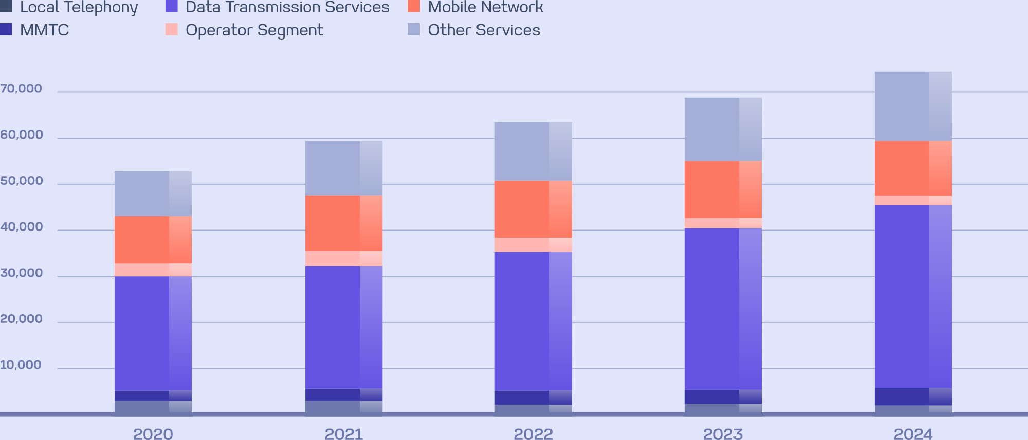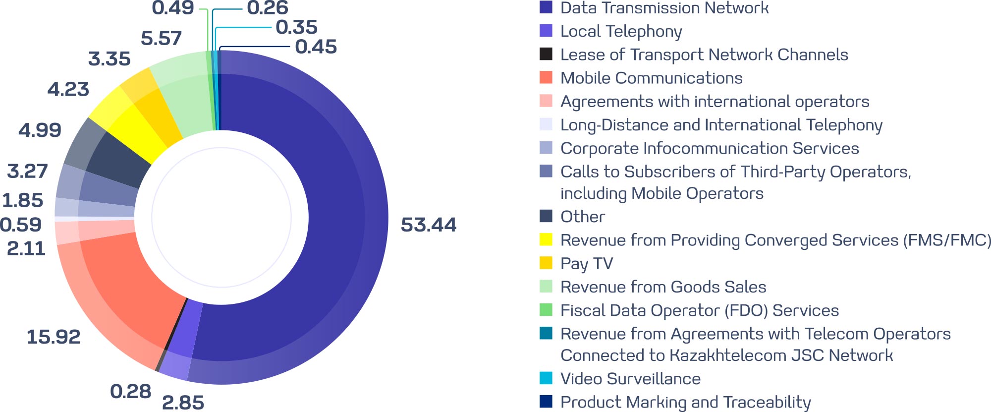 Revenue structure across Kazakhtelecom JSC Group for 2024, %