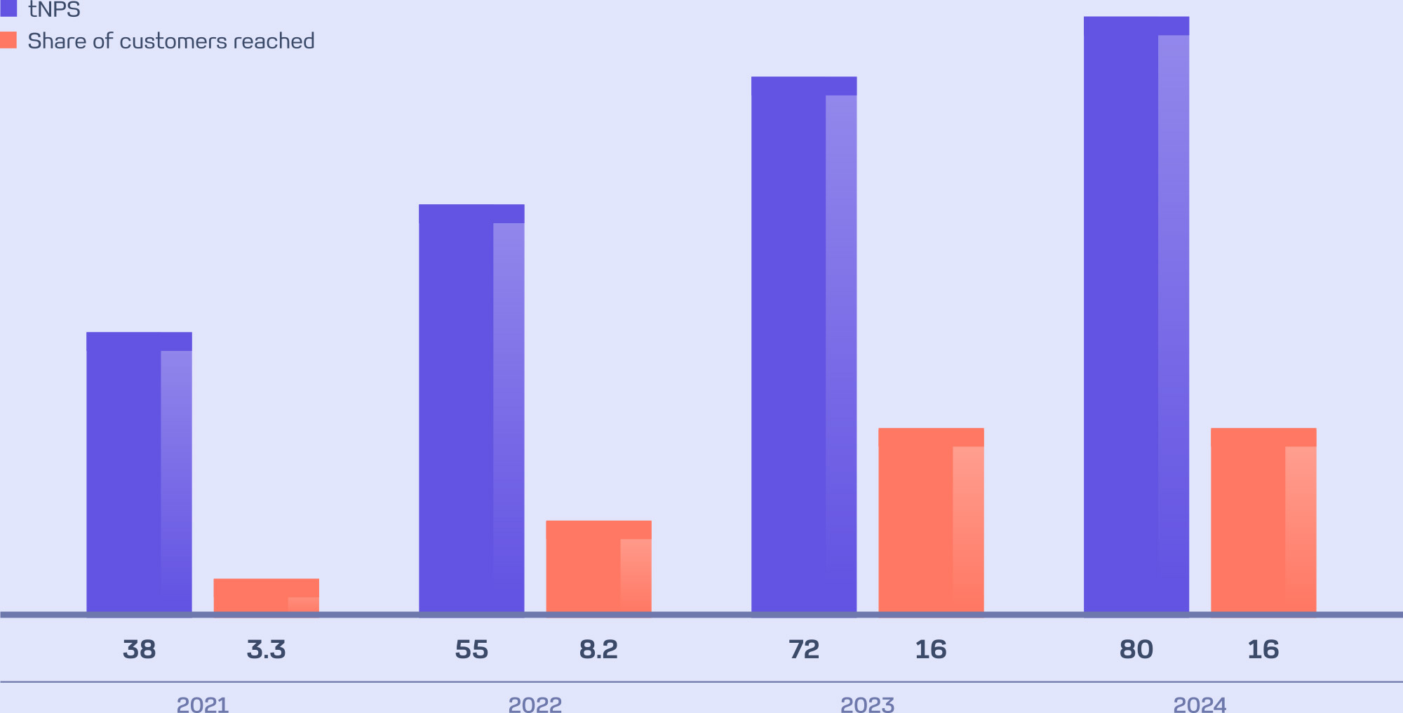 The Net Promoter Score (NPS) in the B2C segment rose to 17% in the fourth quarter of 2024. The increase in positive feedback contributed to attracting new subscribers through recommendations and greater trust in the Company.