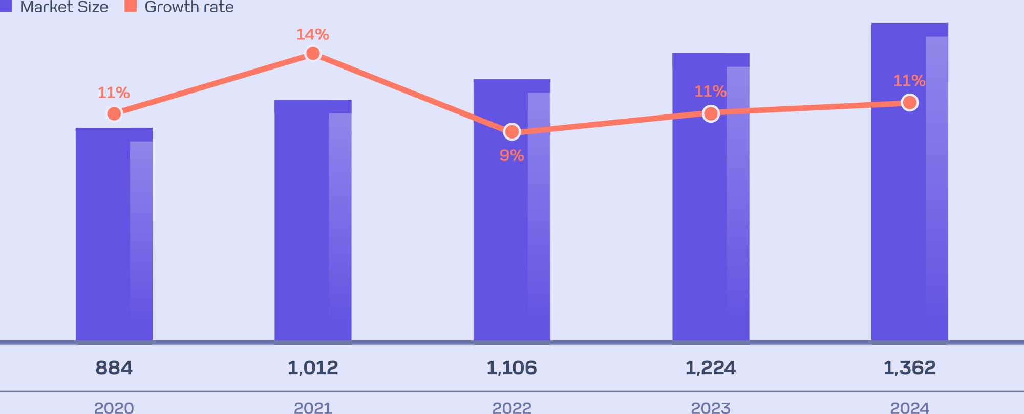 Kazakhstan’s telecommunications market confirmed its growth potential, showing an 11% increase in 2024 compared to the previous year. In absolute terms, the market volume amounted to KZT 1,362 billion.
