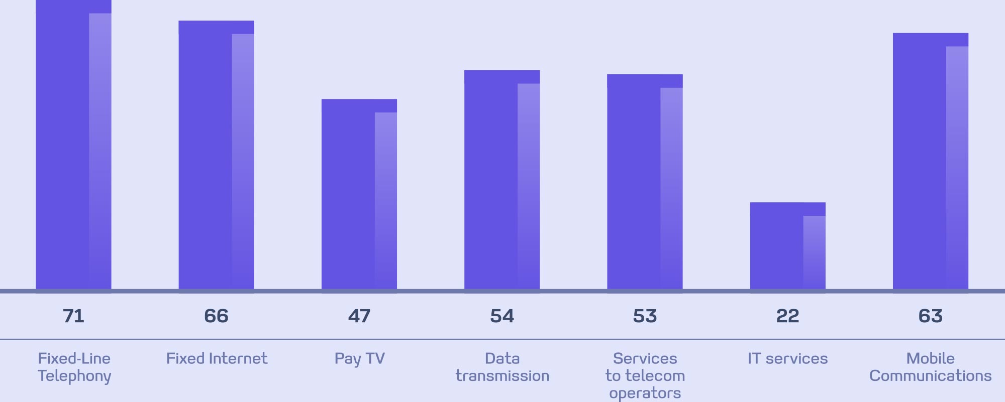 Mobile communications dominate by type of service. Revenue from mobile communication services still generates more than half of the entire market volume — 56%.