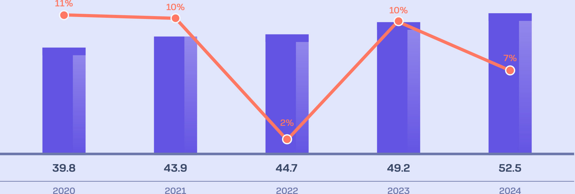 In 2024, the mobile communications market in Kazakhstan reached KZT 764.8 billion, which is a 5% increase year-on-year.