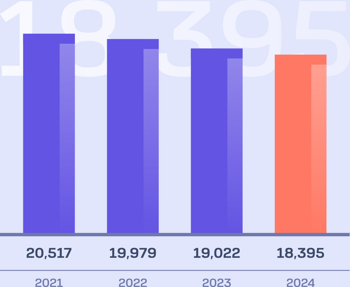 In 2024, the number of full-time employees of Kazakhtelecom JSC was 18,257, including 11,612 men and 6,645 women. The Company also employed 138 part-time employees, including 90 men and 48 women.