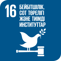 Тұрақты даму мүддесінде бейбітшілік сүйгіш және ашық қоғам құруға жәрдемдесу, барлығы үшін сот төрелігіне қол жеткізуді қамтамасыз ету және барлық деңгейлерде тиімді, есеп беретін және көпшіліктің қатысуына негізделген мекемелер құру