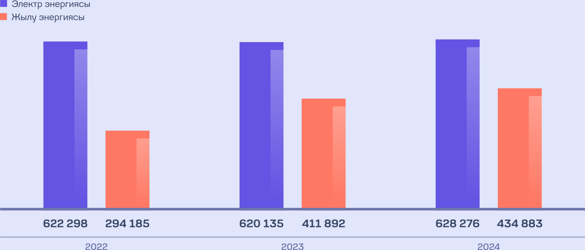 2024 жылы электр энергиясын тұтыну 628 276 ГДж құрады, бұл 2023 жылмен салыстырғанда 1,31%-ға артық. Тұтынудың артуы жаңа коммерциялық және технологиялық серверлердің қосымша орнатылуымен байланысты.