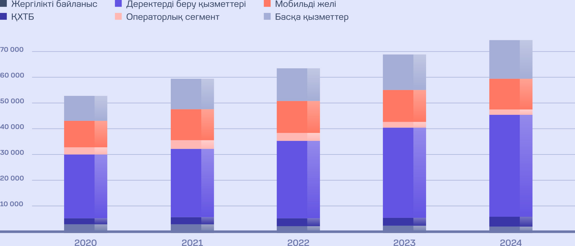 2024 жылы «Қазақтелеком» АҚ-ның жалпы табыс құрылымында ең үлкен үлес келесі кіріс түрлеріне тиесілі болды: