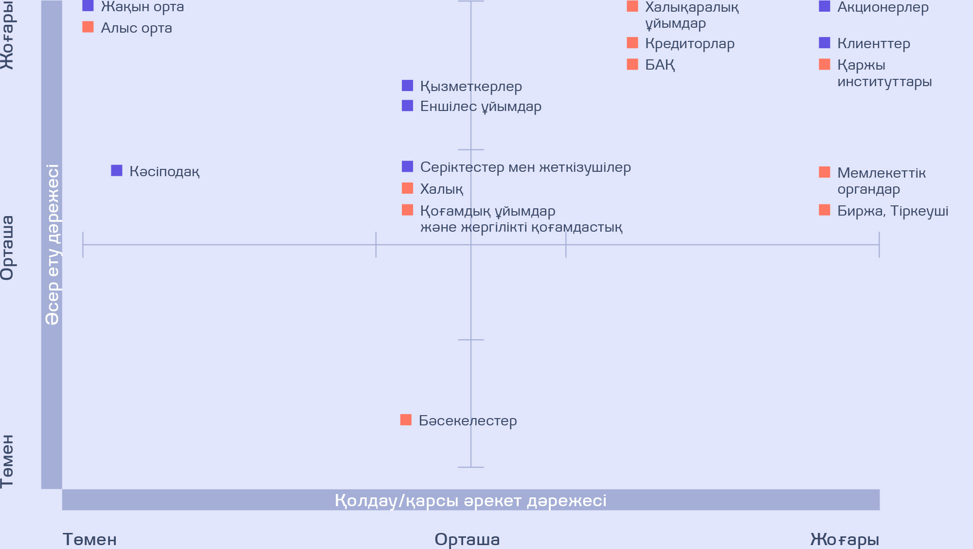 Қоғам стейкхолдерлер мен ұйымның алдында тұрған маңызды мәселелерге дәйекті түрде жауап береді.