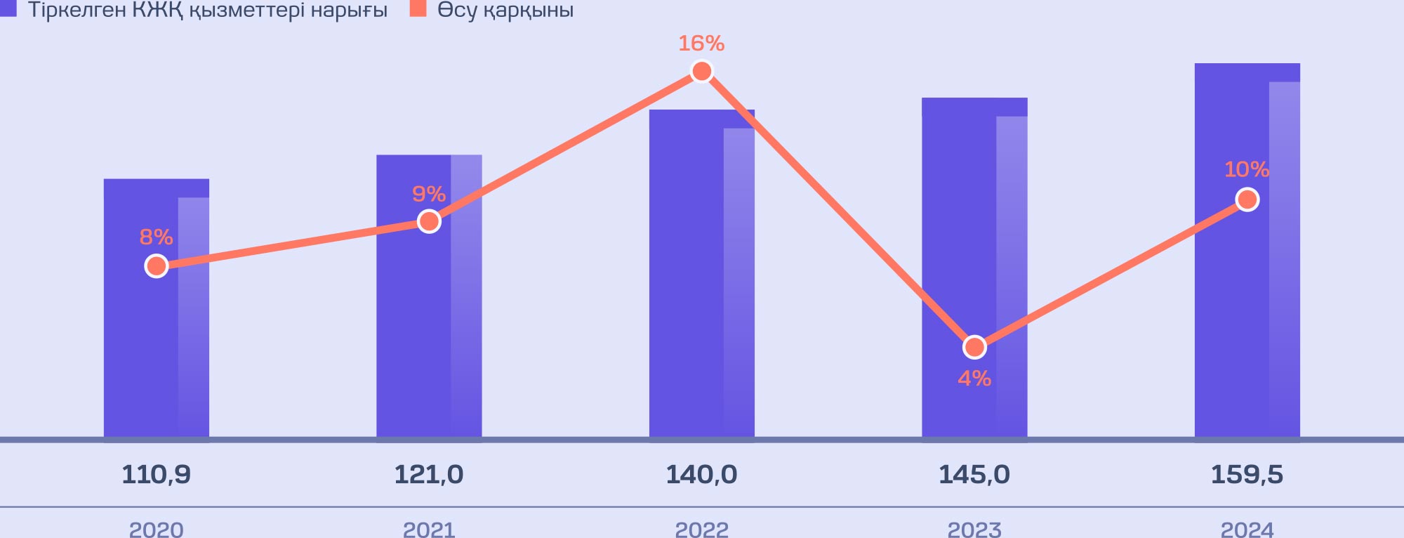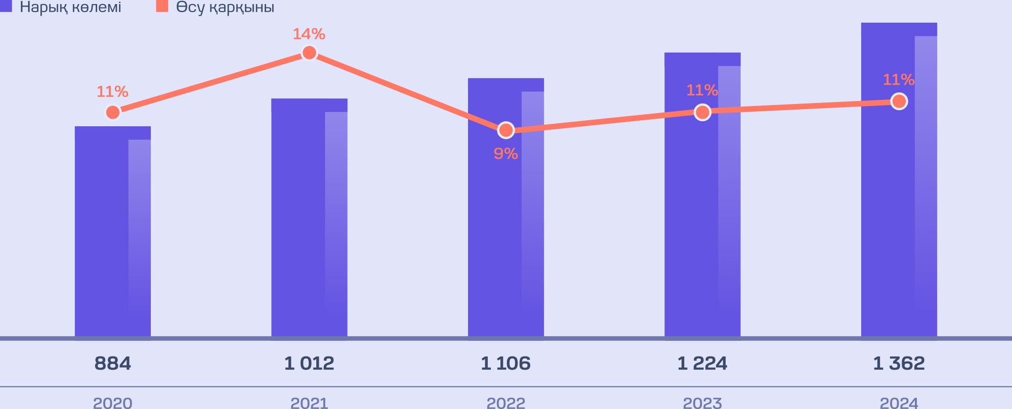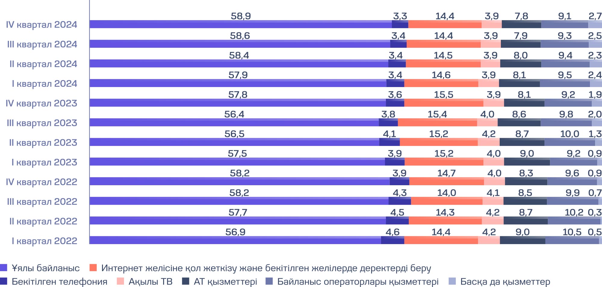 2024 жылдың қорытындысы бойынша байланыс қызметтері нарығының жалпы көлемі 1 362 млрд теңгені құрап, өткен жылмен салыстырғанда 11%-ға артты.