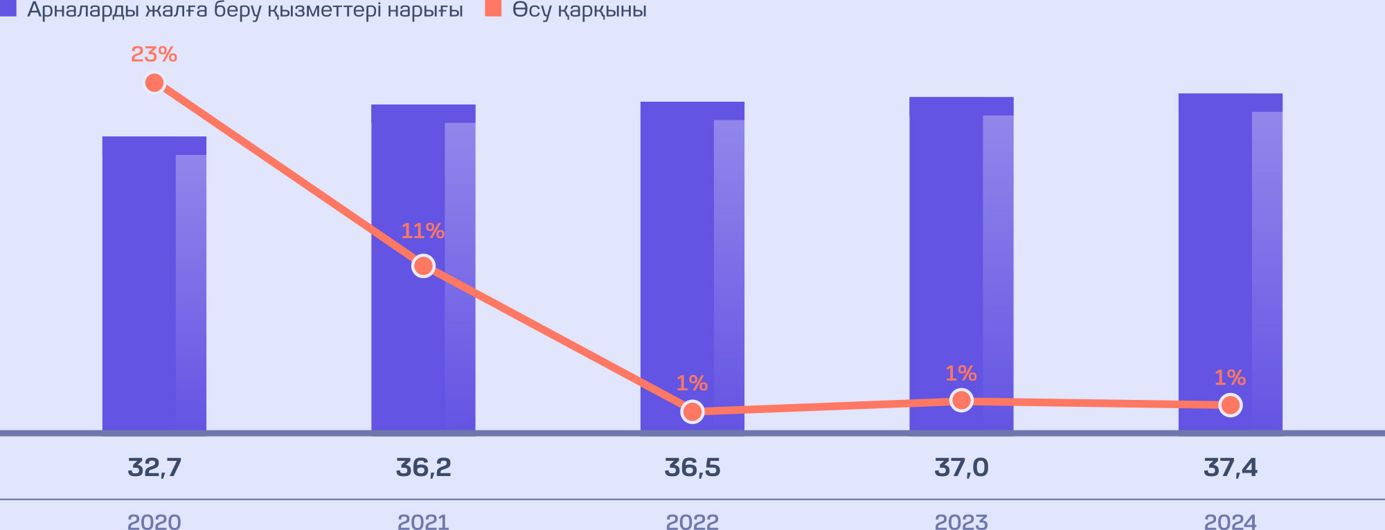 2024 жылдың қорытындысы бойынша арналарды жалға беру нарығының көлемі 37,4 млрд теңгені құрады, бұл өткен жылмен салыстырғанда іс жүзінде өзгеріссіз қалды. Бұл нарықтағы тоқырау үрдісінің сақталуын көрсетеді және алдағы жылдары да осы бағыт сақталады деп болжануда.