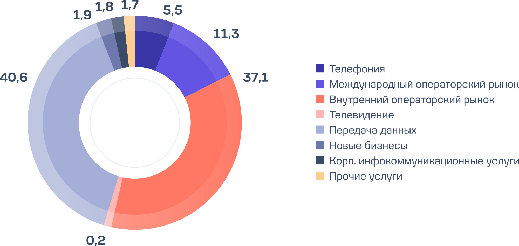 Структура доходов Компании в корпоративном сегменте, 2024 год, %