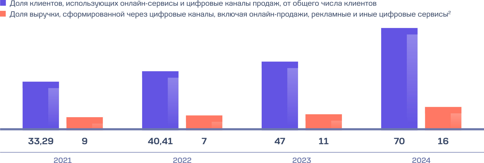 2 Показатели за 2021-2023 гг. по доле выручки, сформированной через цифровые каналы, были пересчитаны.
