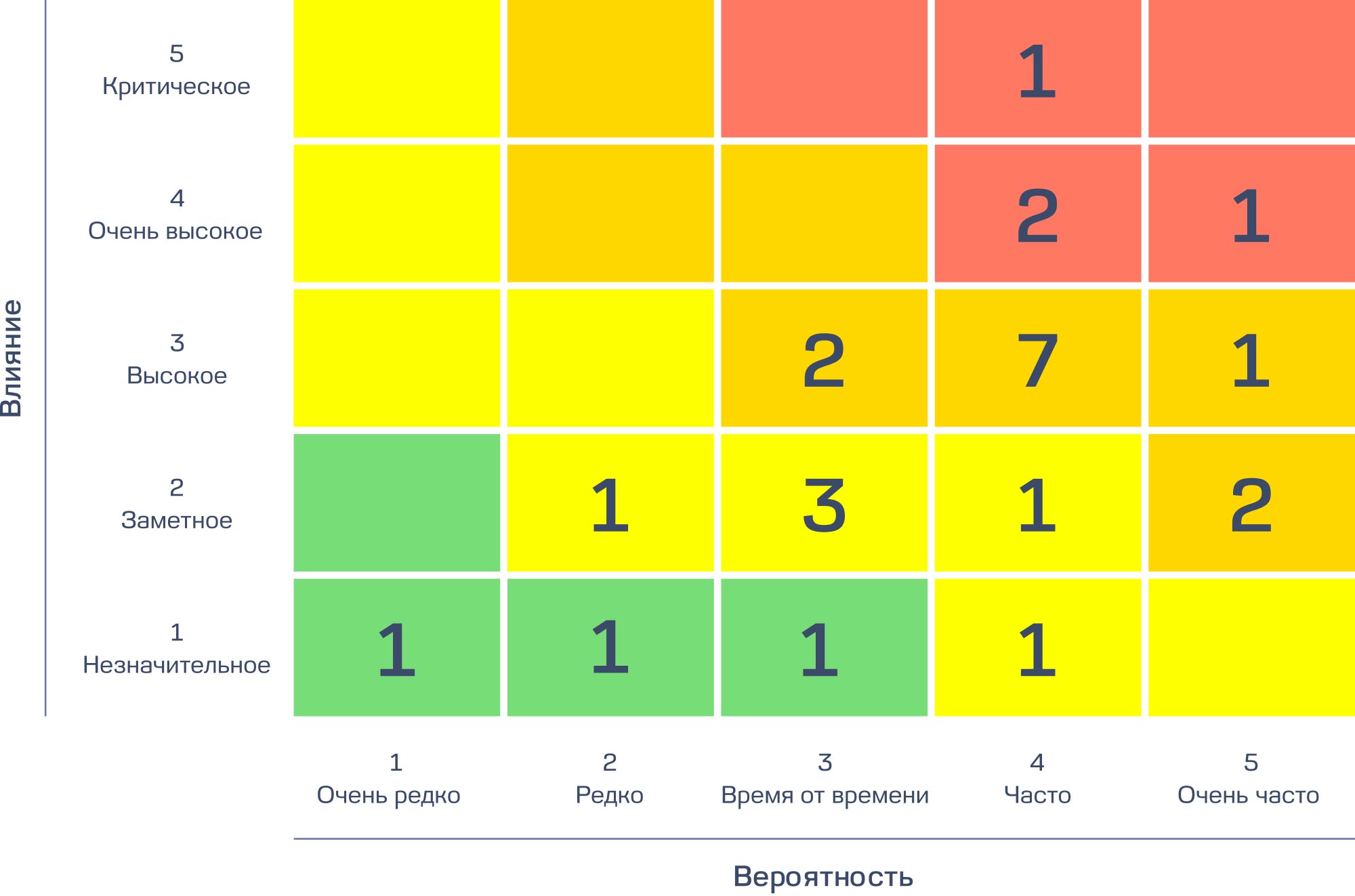 Согласно Регистру и Карте рисков на конец 2024 года в Компании 24 риска: